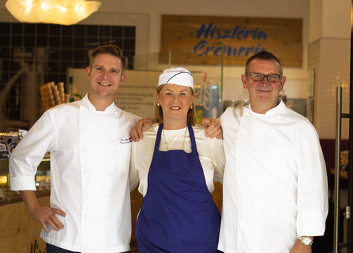 Igazi családi vállalkozás révén, cukrászdánk története generációkon átívelő gyökerekre nyúlik vissza. A vendéglátás azóta is töretlen szeretetét a nagyszülők alapozták meg, akik hosszú évekig dolgoztak a szakmában Budapesten, majd 1983-ban a második nemzedék meg is nyitotta első egységét, egy italboltot. A bolt 1991-ben kiegészült egy fagyis helyiséggel, és ezáltál leraktuk cukrászdánk alapköveit. Az első Hisztéria 1999-ben nyitotta meg kapuit a West Endben, amit 2008-ban a tápiószecsői, 2014-ben, pedig a gyömrői cukrászda követett. Sikerünk okot adott, hogy 2016-ban, immár a harmadik generáció vezetésével, Magyarországon egyedülálló Cremeriát nyissunk az Andrássy úton, melyet 2017-ben a West Endben lévő cukrászdánk Cremeriává alakítása követett.